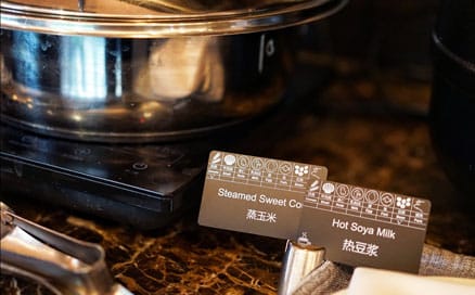 各ビュッフェラベルには、食品カテゴリー、アレルゲン情報、料理名が中国語と英語で表示され、中国人および国際的なお客様のニーズに対応しています。李慧榮氏はこう説明します。「Edikioは、私たちの美的基準と衛生基準を完全に満たしています。統一されたエレガントなカードデザインはビュッフェの魅力を高め、五つ星ホテルのイメージを反映しています。カードは水や湿気に強く、情報の明瞭さに非常に満足しています。」