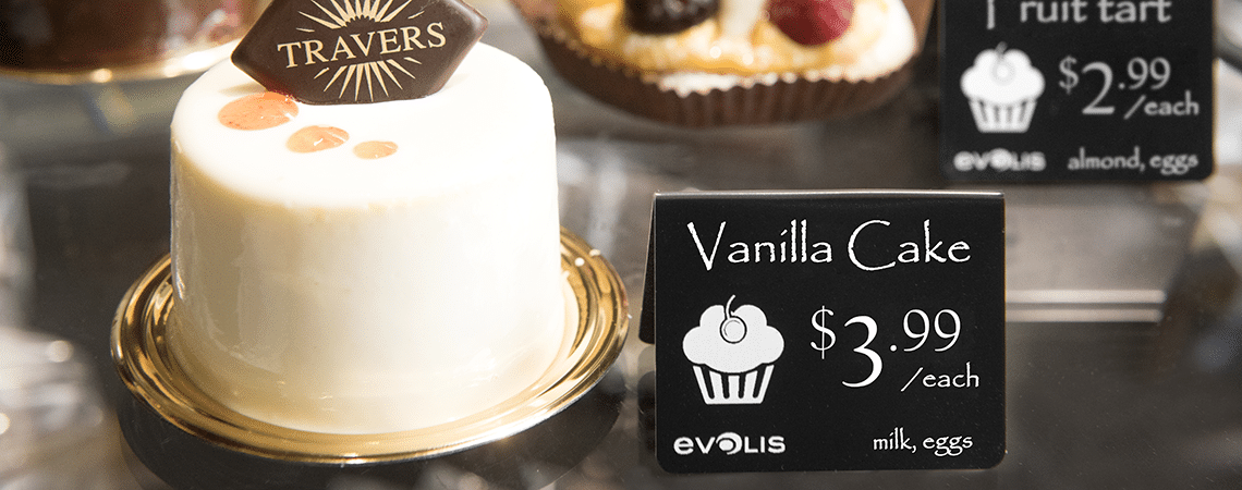 プライスカードにアレルギー情報を小さな文字で記載するだけでは不十分です。たとえ商品の利点を強調できたとしても、アレルギーや不耐性を持つ顧客にとっては、必要な情報を読み取ることが難しくなります。アレルゲンに関する情報を強調することこそ、顧客との信頼関係を築き、尊重するチャンスなのです。